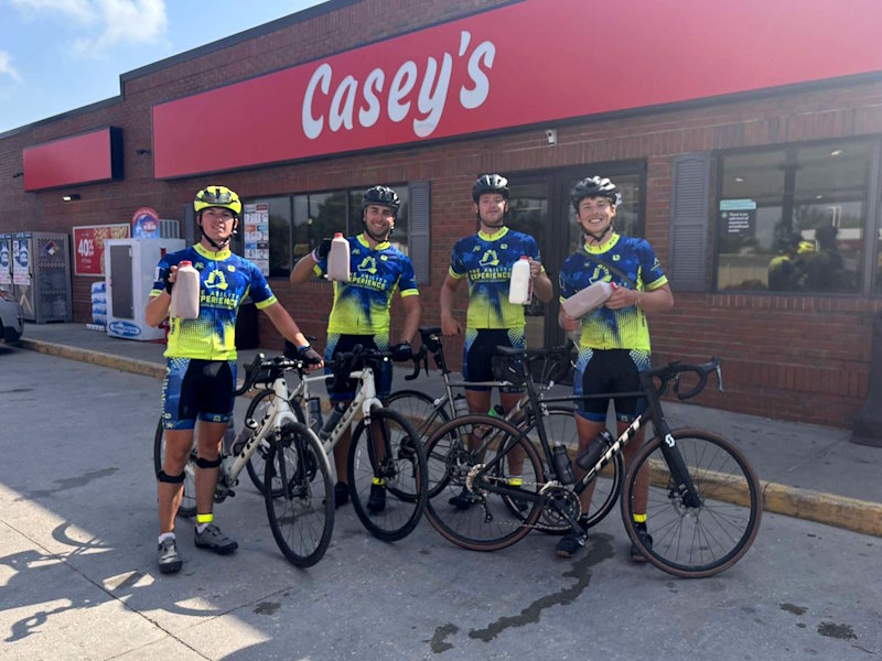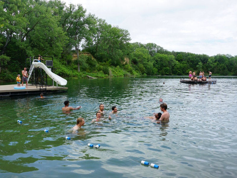 Rode into Iowa today. We’re staying at a Creighton University Retreat, and thanks to the Adickes family we got to hang out at a quarry for a few hours and had some amazing homemade pork tenderloin for dinner!