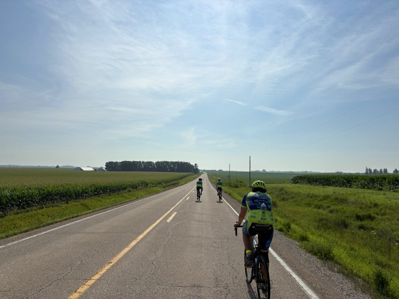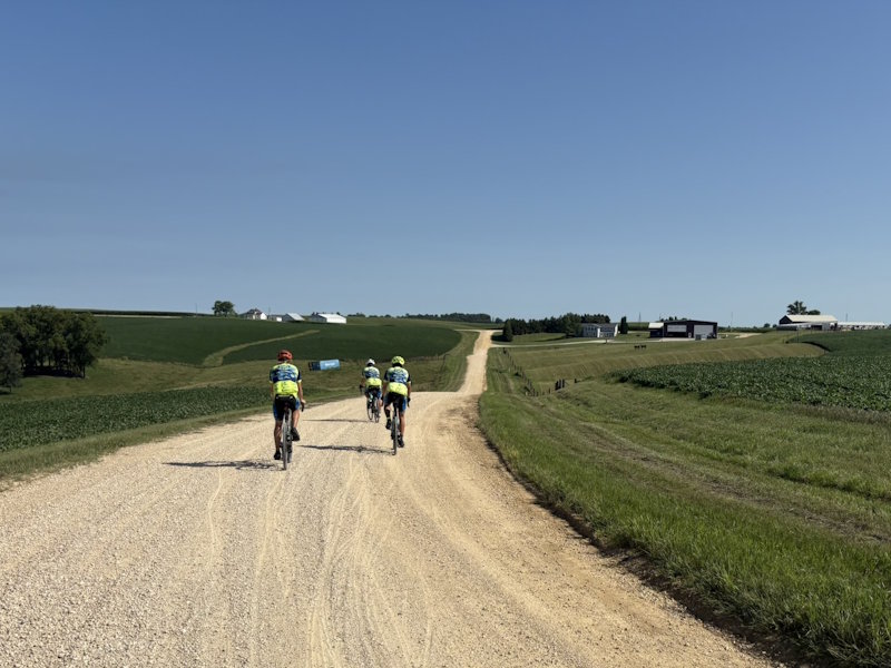 Tough ride with lots of gravel, steep hills, and both at the same time, but it was a great day and a beautiful ride! We then got to play baseball with the Hills & Dale group, and some kids from the area! Leaving Iowa tomorrow and heading into Wisconsin!