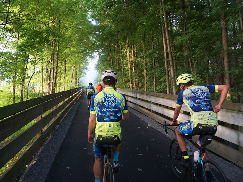 Super fun day today! It was a hot one, so my pace line decided to jump into as many bodies of water as we could! Final count was 16 — some nicer than others. East Lansing was a pretty cool college town, and we had a great dinner at Beggars Banquet and Cold Stone for dessert!