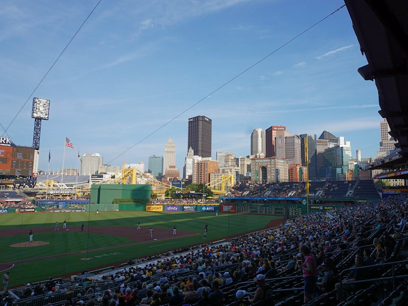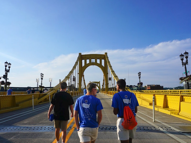 Pleasantly surprised by Pittsburgh – second best city on the trip in my opinion! The ride was long, our last century, and had some hiccups – but was still fun. We stayed at the YMCA both nights, definitely our tightest fit yet. First night we went to an alumni-owned sports memorabilia shop for dinner and had free access to the arcade. On our day off we had an awesome friendship visit with Always B Smiling, where we got to go on a bike ride with the friends! To top it off we got free Pirates tickets from an alumni! Great way to spend our last off day!